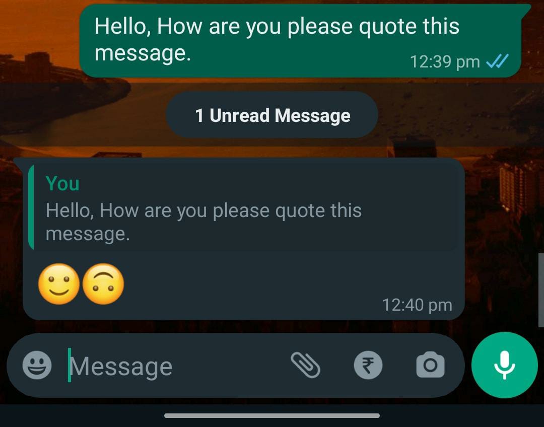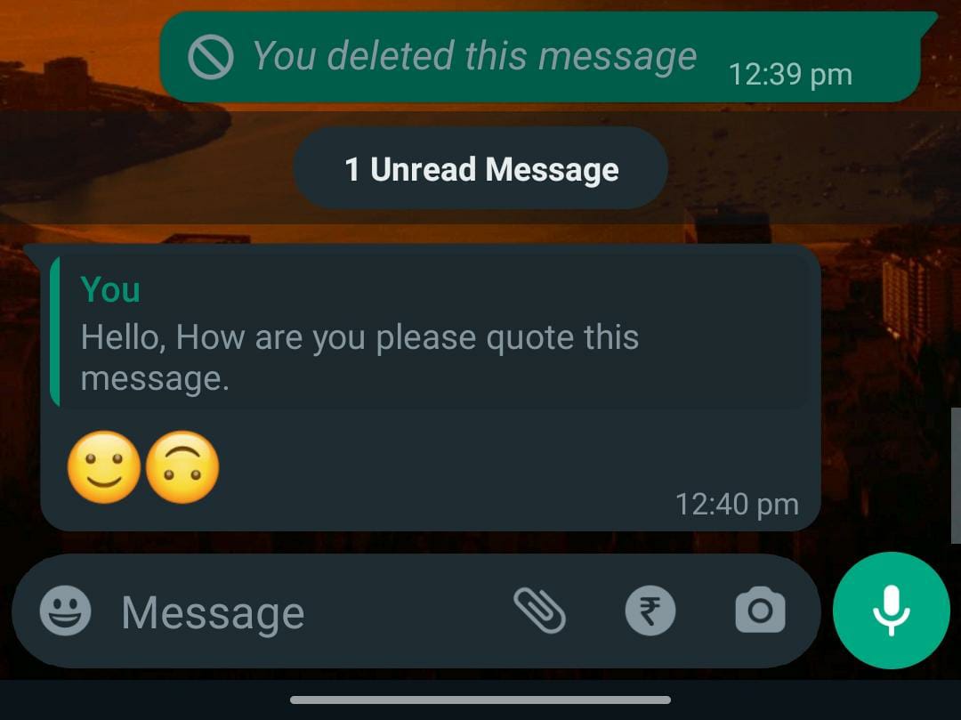 As you can see in the example above, the quoted reply to message isn’t deleted even when the original message is deleted for everyone in the Whatsapp.